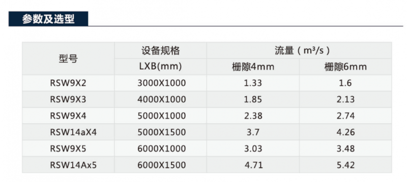 RSW型水平溢流格柵是其中常用的一中簡單而有力的合流製管網溢流格柵。它安裝在溢流口的混凝土堰上,水流水平橫向通過格柵,主要功能是用來阻止漂浮、懸浮、不可生物降解及固態雜質的流出,確保任何大於4mm尺寸的雜質在入流處被篩選掉,從而不會幹擾到溢流排放過程,篩渣和固體雜質保留在柵網前端,從而進入後續的汙水管。格柵通過電控液壓係統控製柵條間隙清洗刷來回運動實現自清洗,當堵塞發生的時候,控製係統通過清洗刷在堵塞位置反複運動直至堵塞清除。格柵背部設置後擋板來保證過柵水流均勻且至大流速不超過1.5m/s。格柵上方為緊急溢流排放口,當格柵自清洗係統失效或者格柵超載的時候,水流可以從格柵上部的緊急溢流口通過。